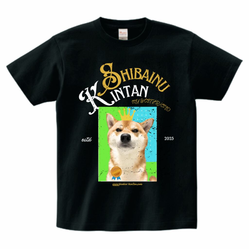 デザイン: ヴィンテージ感漂うブラックのTシャツに、「柴犬きんたん」の愛らしいイラストが魅力的にプリントされています。シンプルながらも存在感があり、どんなスタイルにもフィットするアイテムです。